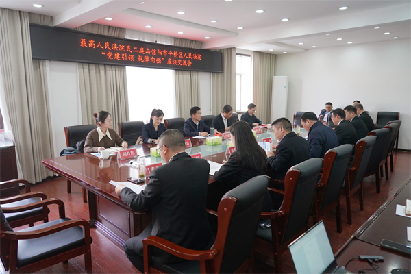 最高院民二庭与平桥区法院召开“党建引领·脱薄向强”座谈交流会。信阳中院党组书记、院长刘万喜出席会议,平桥区法院党组书记、院长张楷永,平桥法院党组成员,各部门负责人参加座谈会。