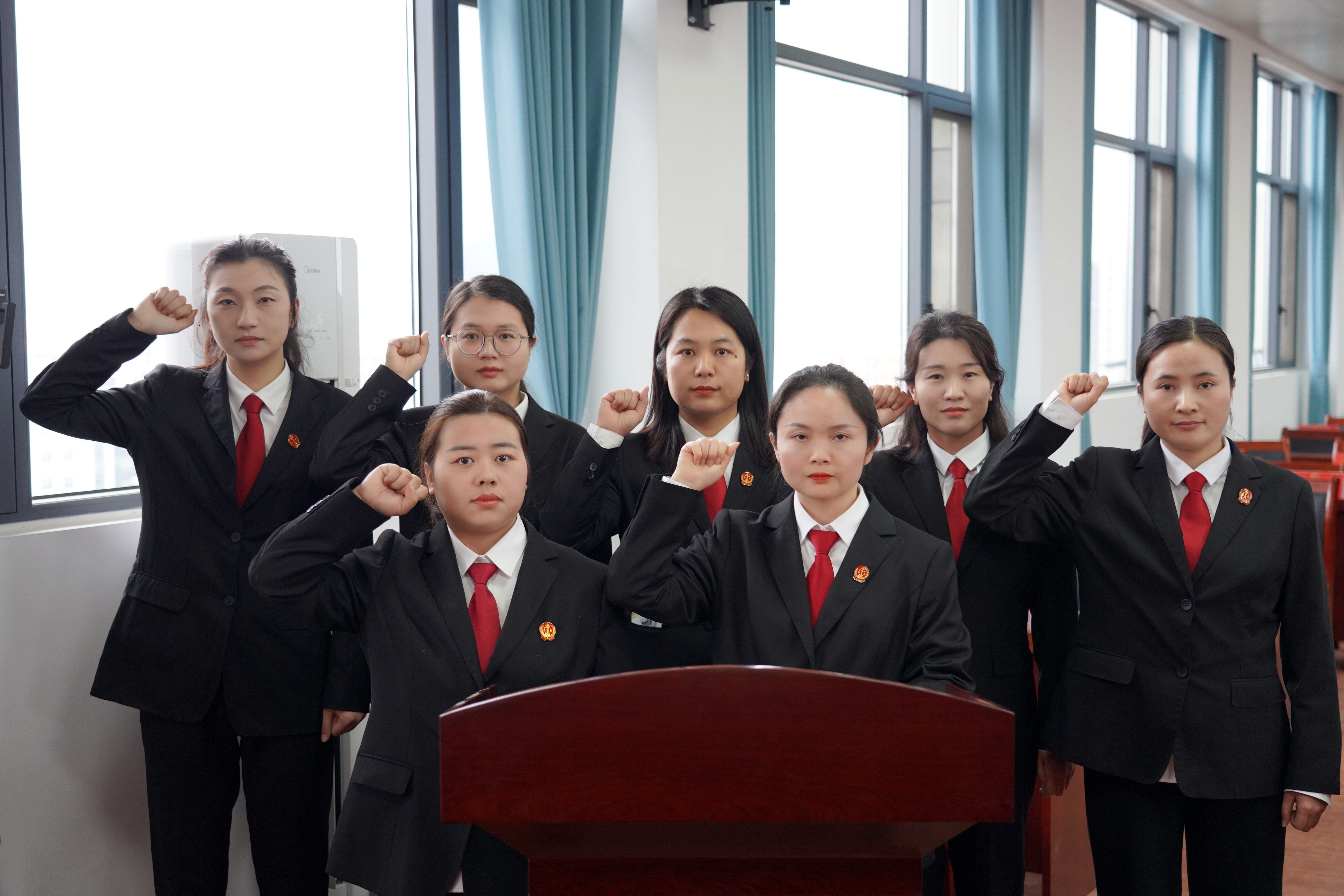 在领誓人的带领下,7名新任职的法院干警肃立致敬,庄严宣誓。并表示,将以此次宣誓为新的起点,把誓言铭刻于心、践之于行,在今后的司法工作中,牢记初心使命,永葆清正廉洁政治本色,为建设更高水平的法治社会提供坚实司法保障